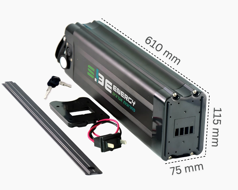 סוללת ליתיום-יון 23.8Ah נשלפת המורכבת עם תאים איכותיים במיוחד לאורך חיים מקסימלי. מתאימה לרוב דגמי האופניים החשמליים בישראל ומספקת פתרון אמין ועמיד למערכות 60V. מיוצרת בישראל בסטנדרט איכות גבוה.